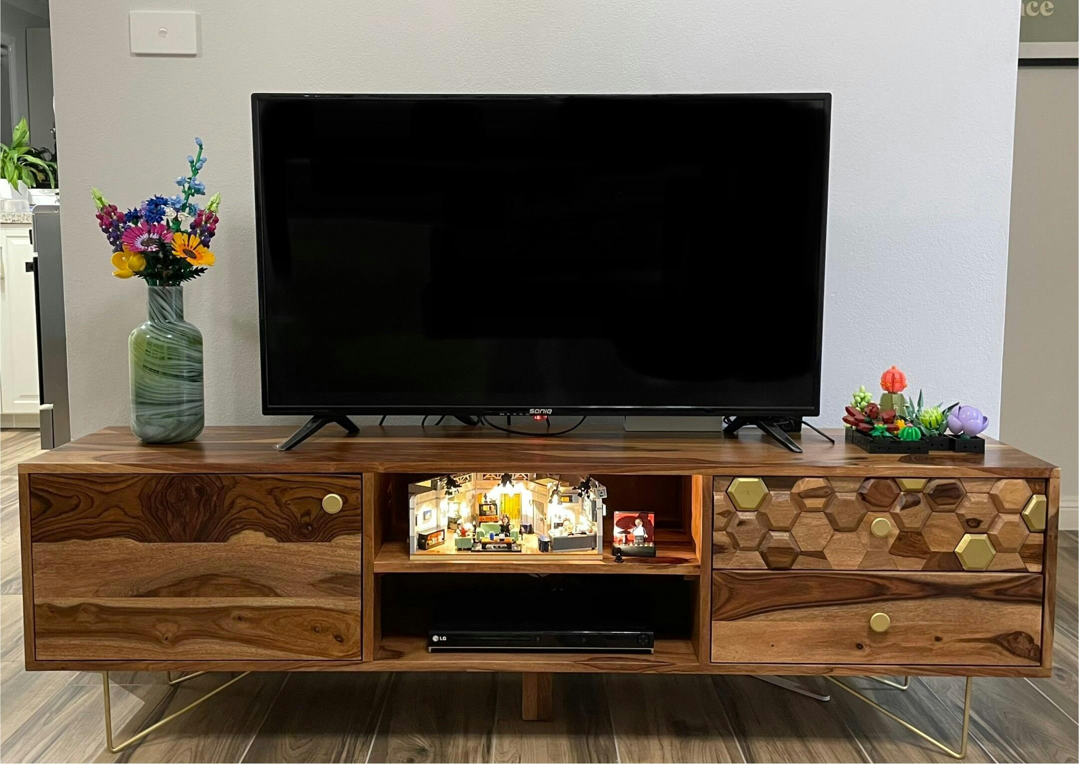 After a long search for the perfect tv unit, we came across the Goldie and made the purchase. It was packaged very well, and we loved that the only thing to assemble were the legs! The quality of the unit is amazing, and the honeycomb detail is so unique. Will definitely be looking at HF for future furniture needs